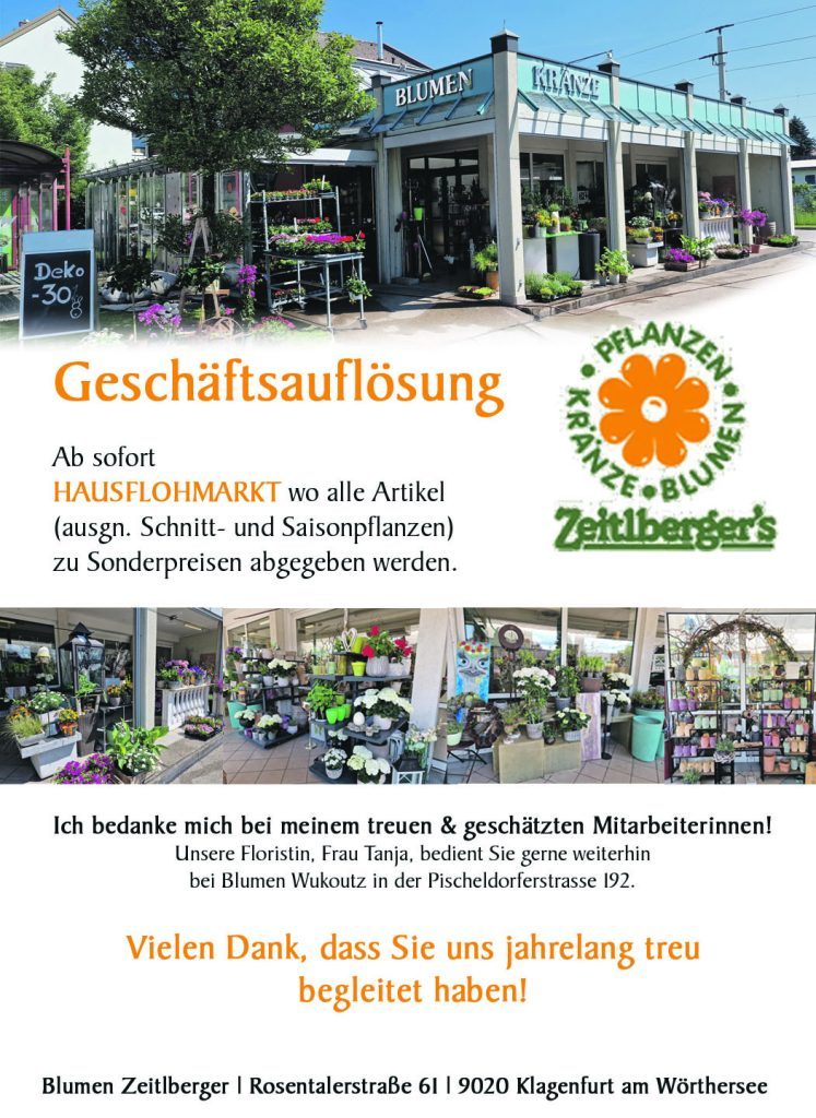 Geschäftsauflösung Blumen Zeitlberger
